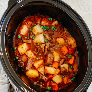 Add 1-2 cups of frozen peas to the pot about 30-60 minutes before serving.