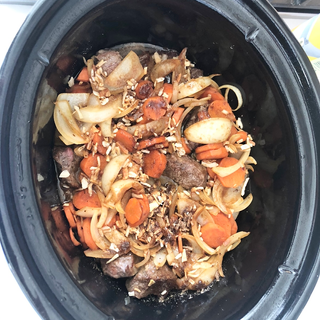 2 lb diced tender pot roast (seared)