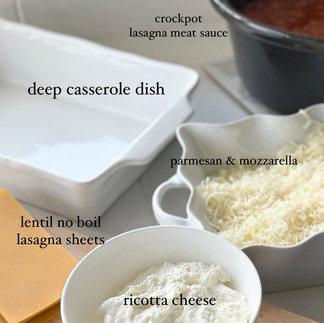Layer the noodles, cheese and sauce and then bake covered at 350° for 60 minutes.