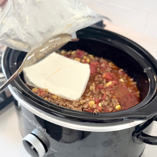 This is a versatile crockpot recipe. You can put it on pasta or just by adding an extra brick of cream cheese it becomes a top-notch party dip! It is also super simple and feeds a lot of people! Perfect for tailgating, or bringing to a potluck, or just an easy meal for your family. It has a lot of my go-to spices.